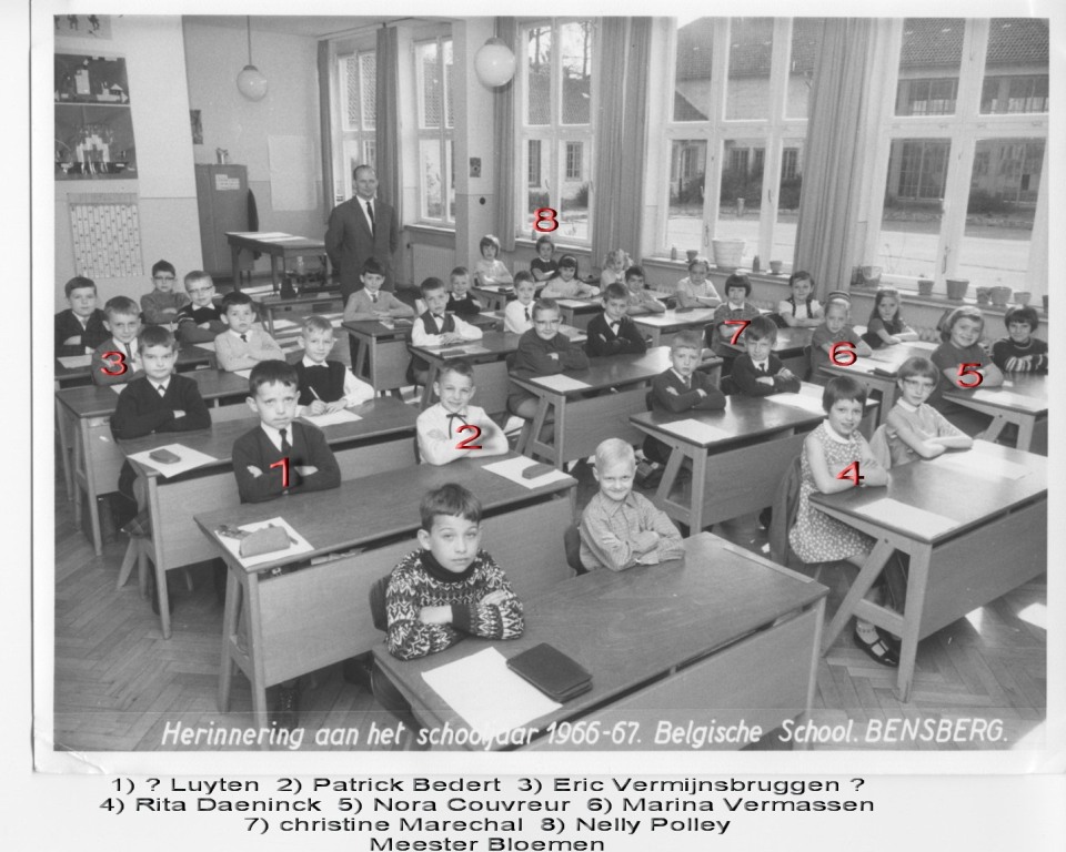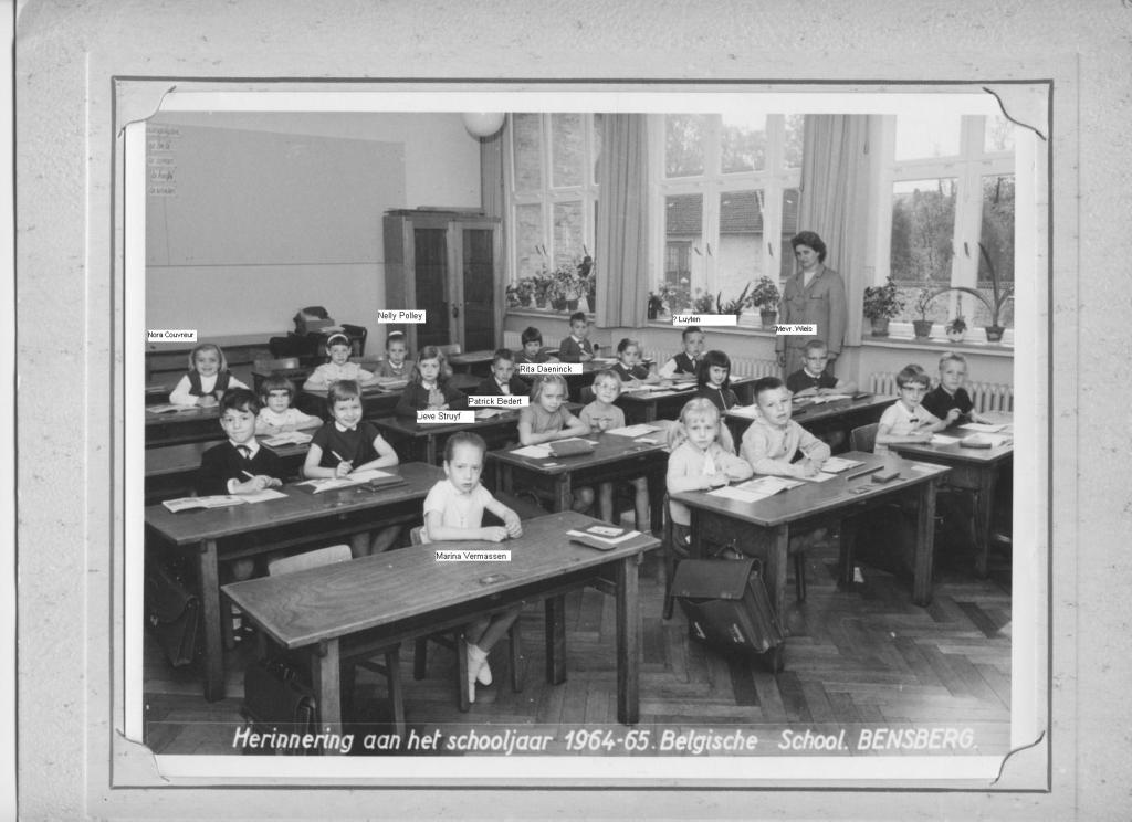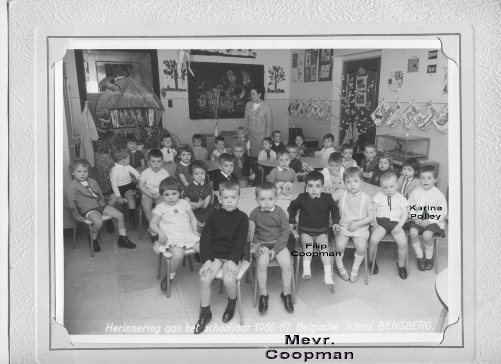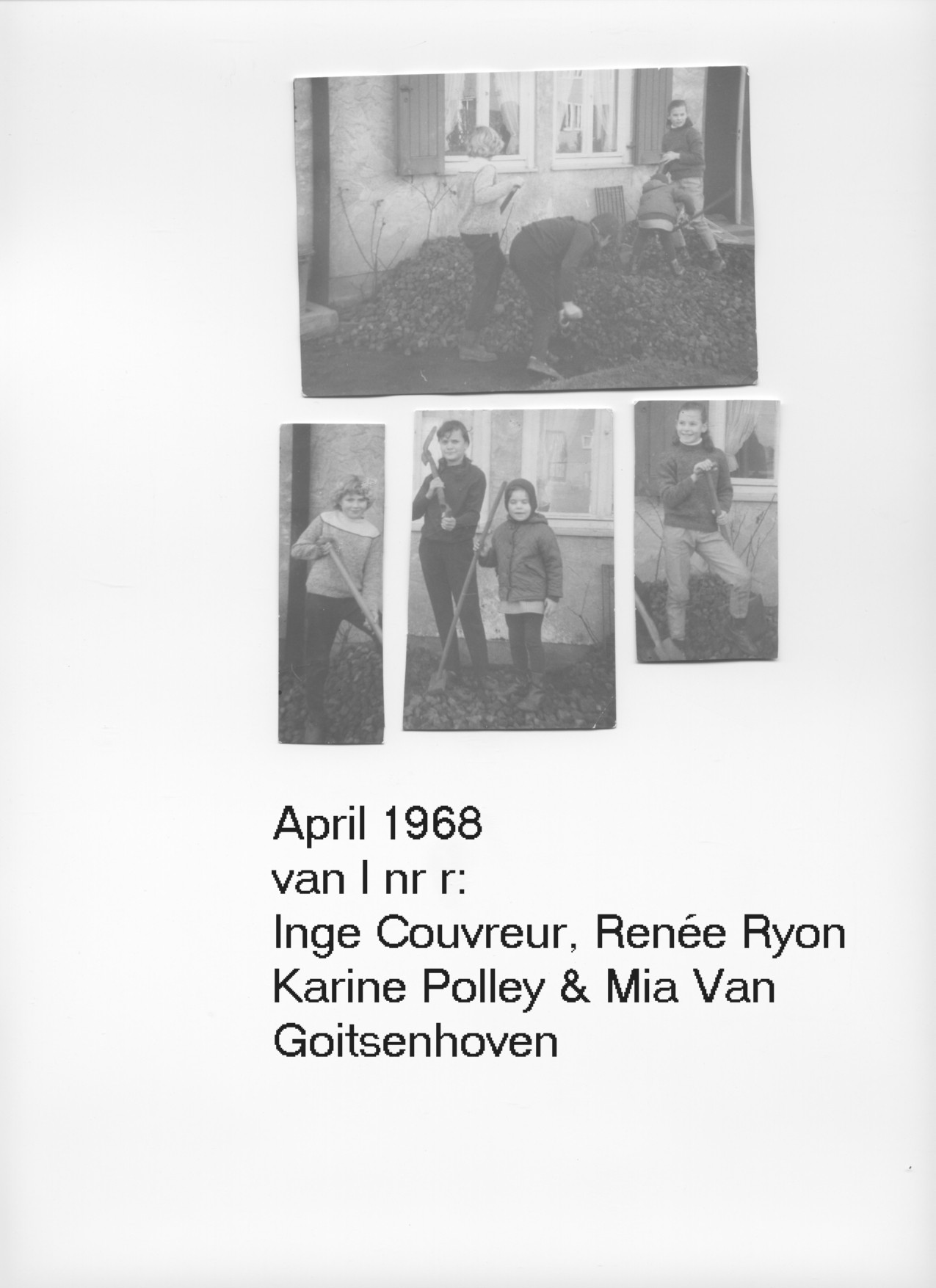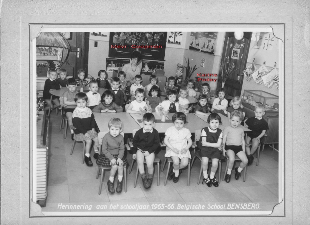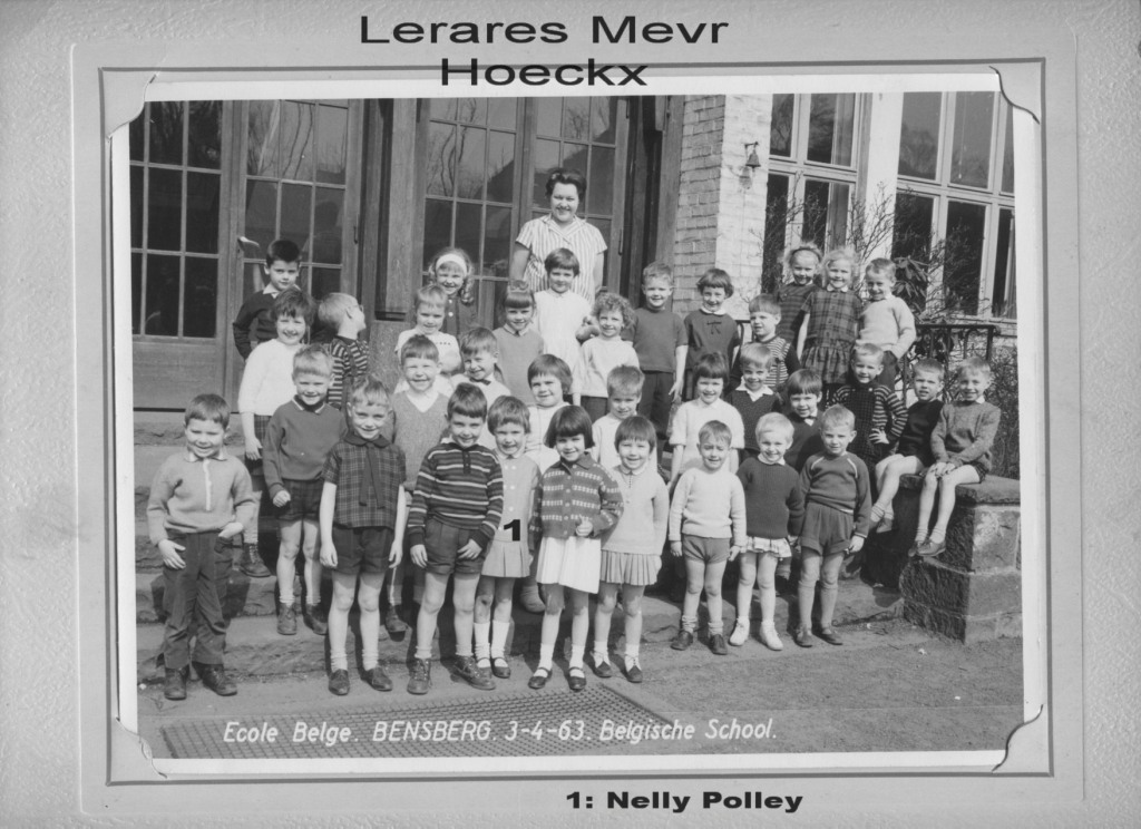 Foto feest einde schooljaar. Langerij: Marina Vermassen, Nora Couvreur, M. Mondelaers?, ?, ?, Nelly Polley, ?, Christine Marechal, ?, ?, ?
