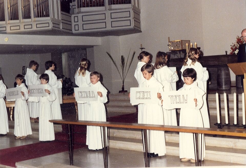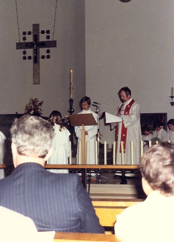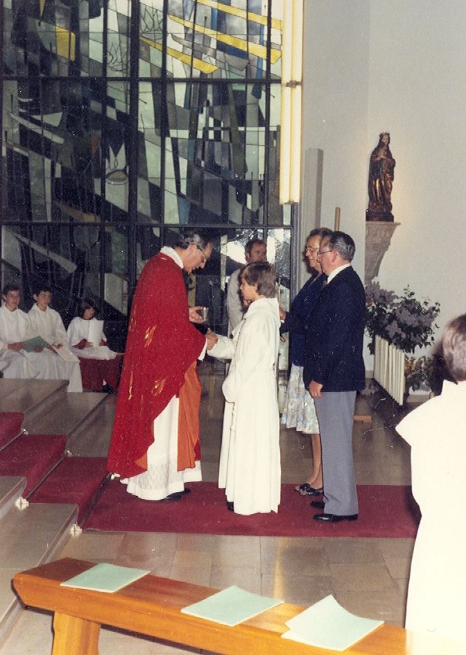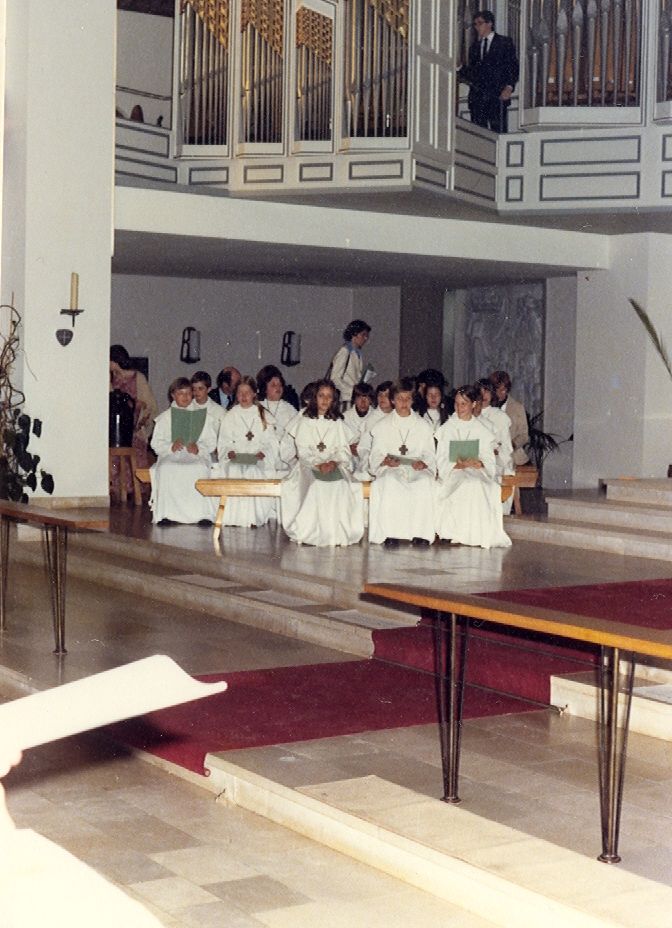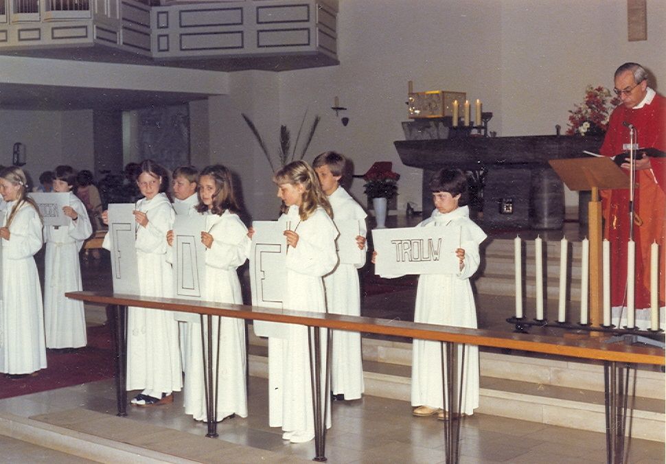 Plechtige Communie van Marc en Ann Vallons op 26 mei 1979, in de kerk van Frankenforst - Bensberg